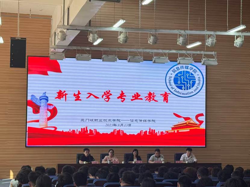 会上,刘学文和侯枫分别对学生进行了市情、校情和院情教育,让新生进一步了解三门峡、三门峡职业技术学院、信息传媒学院情况。刘学文以“修炼品行、踔厉奋发、超越自我”为题,对2025级新生提出了三点建议:一是要修炼品行,做一个品格高尚的大学生;二是努力奋发向上,让知识改变命运;三是学会在合作中发展,不断超越自我。侯枫以“在历史与未来的交汇点上,做数字时代的追光者”为题, 对同学们提出三点希望:一是敢“追着技术跑” 二是敢“把技术用起来”;三是敢“给自己多一条路”。院部领导鼓励同学们珍惜在三职院的学习机会,做好个人学习和职业规划,积极参加社团活动,通过各种校内平台锻炼自己,提高个人素养,把“小我”融入团队的“大我”中,努力实现从“小我”到“大我”的跃升,不负韶华,只争朝夕。