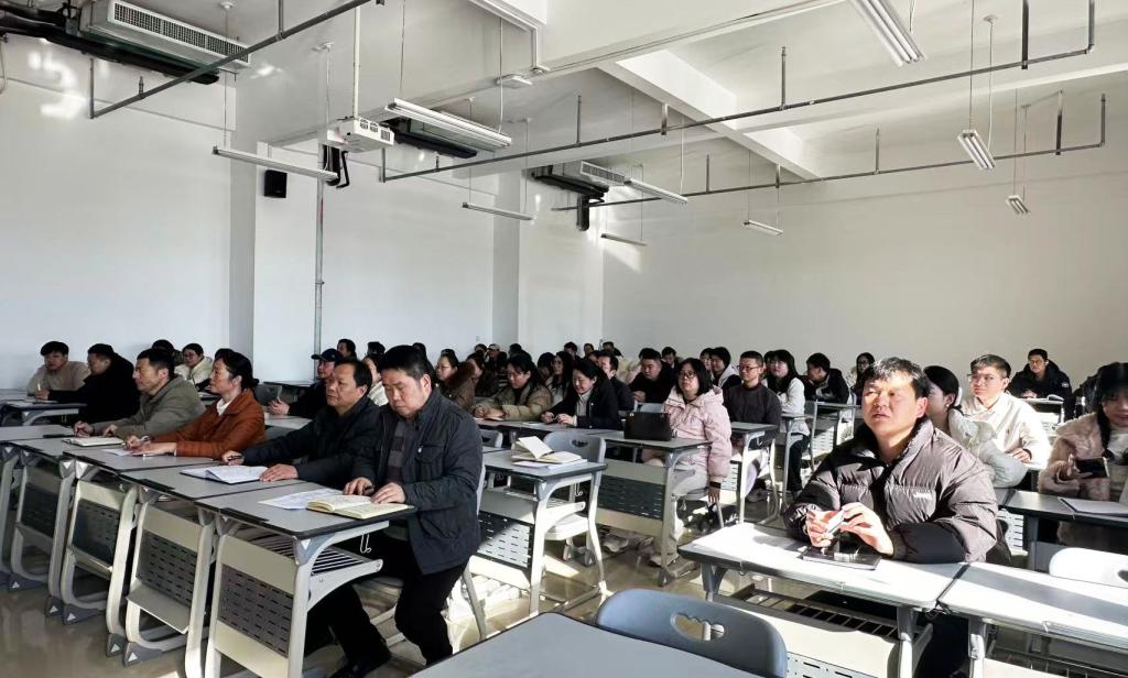 员莹围绕二十届四中全会精神核心要义,从三个维度展开系统解读。首先强调,党的二十届四中全会作为新征程上的关键会议,为“十五五”时期经济社会发展绘就了宏伟蓝图,其中对教育、科技、人才协同发展的战略部署,明确了新时代教育工作的方向指引和行动遵循。随后结合教学工作实际,聚焦“如何将全会精神融入教学全过程”提出具体要求。指出全体教师要立足教学主阵地,把全会提出的新思想、新论断、新要求转化为课程内容和教学实践,推动党的创新理论进教材、进课堂、进头脑;要紧扣“十五五”时期高质量发展需求,优化专业结构、创新教学方法,强化学生创新精神和实践能力培养,助力发展新质生产力;要锤炼自身专业素养,以“躬耕教坛、强国有我”的责任担当,打造让学生真心喜爱、终身受益的“金课”,夯实人才培养根基。